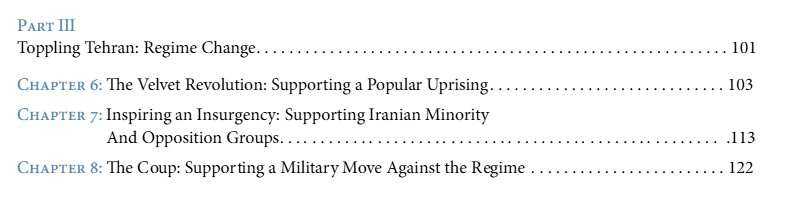 The document pretends to offer nice-guy diplomatic solutions to bring Iran into the fold of Western powers and then suggests a number of treacherous options for toppling the Iranian government when diplomacy—as defined by the US—fails.